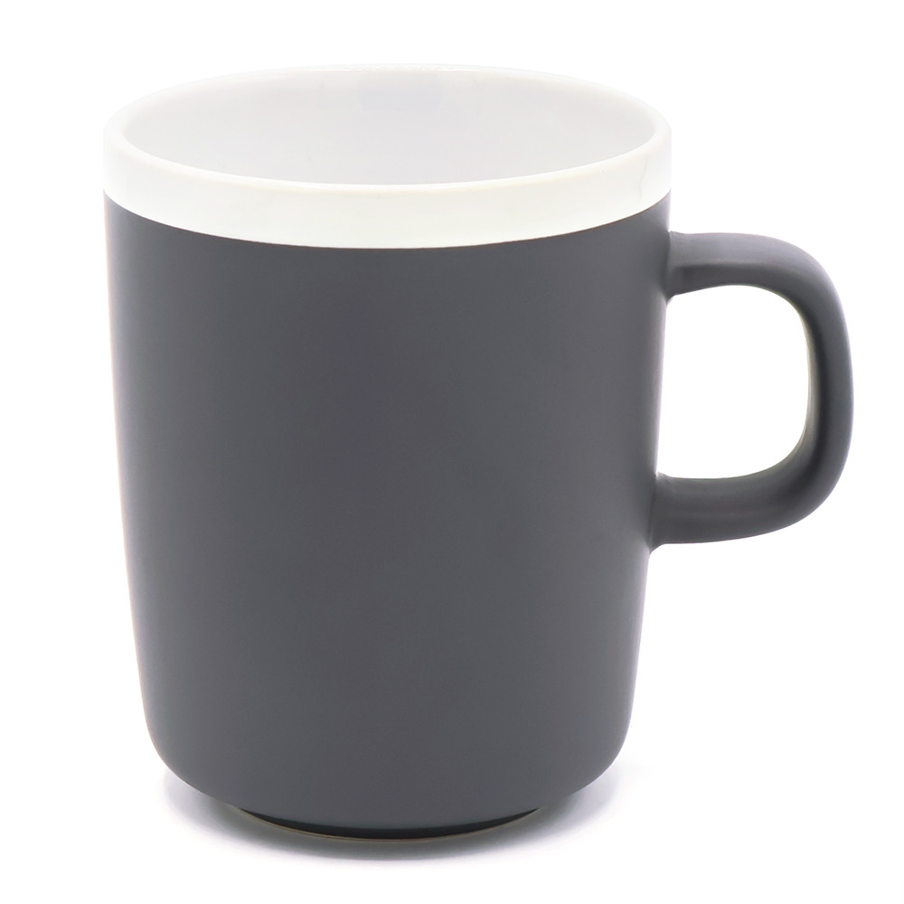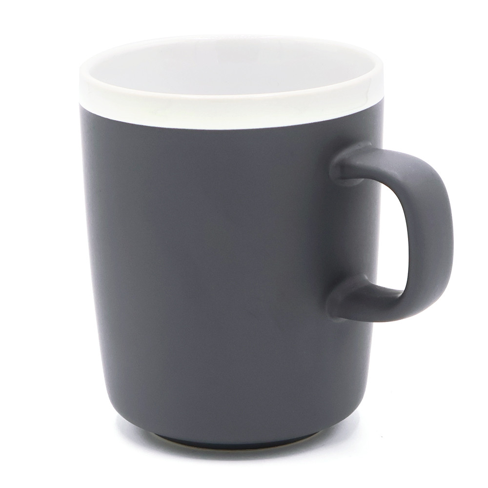 Матовая поверхность с белым глянцевым ободком по краю создаёт контраст и привлекает внимание. Благодаря лаконичной форме и эргономичной ручке кружку удобно держать в руке. Кружка доступна в различных цветах. Подходит для горячих и холодных напитков. Цвет по PANTONE® (максимально приближен): cool grey 10c
