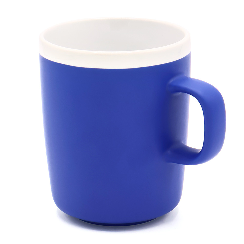 Матовая поверхность с белым глянцевым ободком по краю создаёт контраст и привлекает внимание. Благодаря лаконичной форме и эргономичной ручке кружку удобно держать в руке. Кружка доступна в различных цветах. Подходит для горячих и холодных напитков. Цвет по PANTONE® (максимально приближен): 2726C