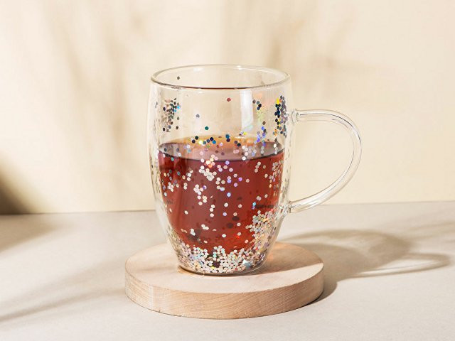 Кружка с праздничным настроением сделает любое чаепитие немного ярче и настроит на позитивный лад. Яркие блестки свободно перемещаются между двойными стенками: просто встряхните кружку, и вихрь цветных блесток взметнется наверх. Двойные стенки позволяют не обжечь ладони, даже если внутри — самый горячий напиток, а удобная широкая ручка дает комфортно обхватить кружку. Обратите внимание на то, что ручка не нагревается: это делает ее особенно удобной и объясняется конструкцией. Материал — боросиликатное стекло: легкое, словно пластик, прочнее обычного минерального стекла, и при этом такое же безопасное для человека. Кружку можно использовать с напитками до 150 градусов Цельсия, мыть в посудомоечной машине. - жаропрочное боросиликатное стекло - не обжигает руки: двойные стенки и не нагревающаяся ручка - безопасный для человека прочный материал - блестки не статичны, а подвижны: при встряхивании они меняют свое положение - нельзя разогревать в СВЧ-печи - можно мыть в посудомоечной машине