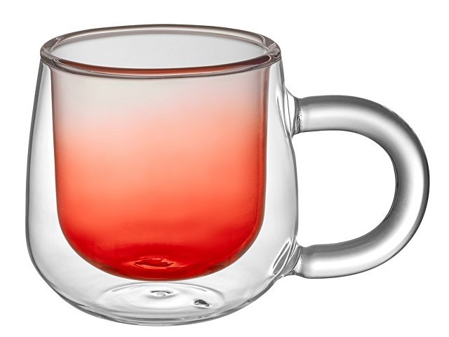 Кружка с двойными стенками с широкой ручкой и градиентным покрытием "Fog", красный