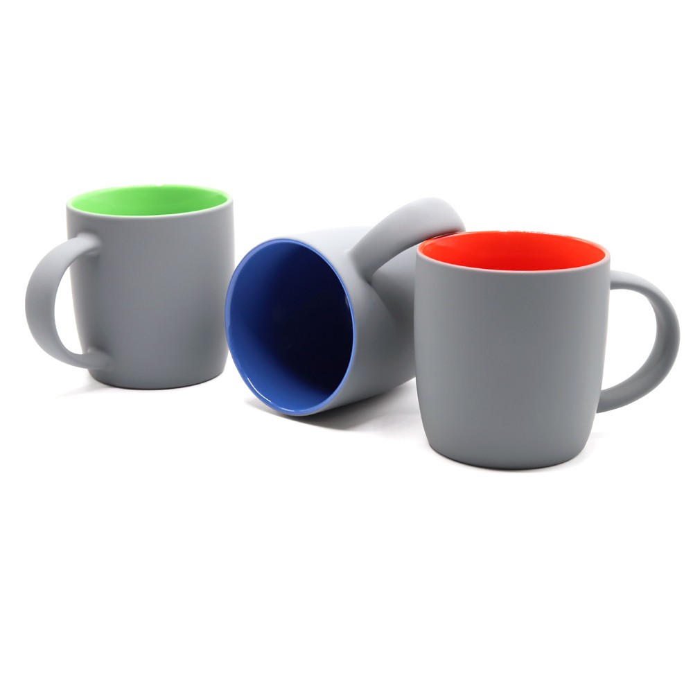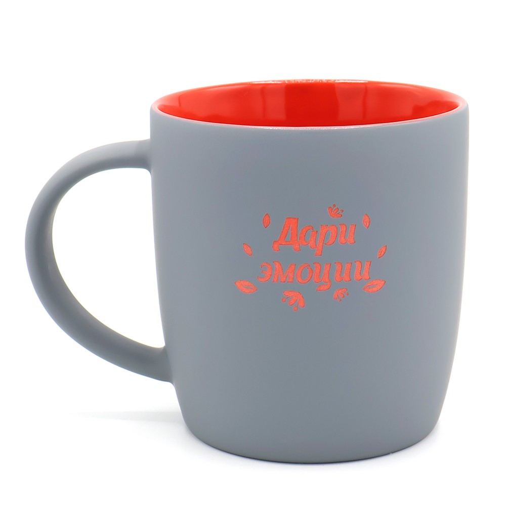 Керамическая кружка Spring объёмом 350 мл с покрытием софт-тач и яркой цветной внутренней частью будет смотреться креативно и выразительно всегда и везде! Необычняа форма кружки, шелковистая прорезиненная поверхность, удобная ручка и яркое покрытие внутри - это всё кружка Spring! В кружке Spring под покрытием софт-тач слоя нанесен слой глазури такого же цвета, что и внутри; и при гравировке вы получаете яркое цветное изображение. Цвета, близкие к пантонам - pantone Cool Gray 10 C, pantone 1788C