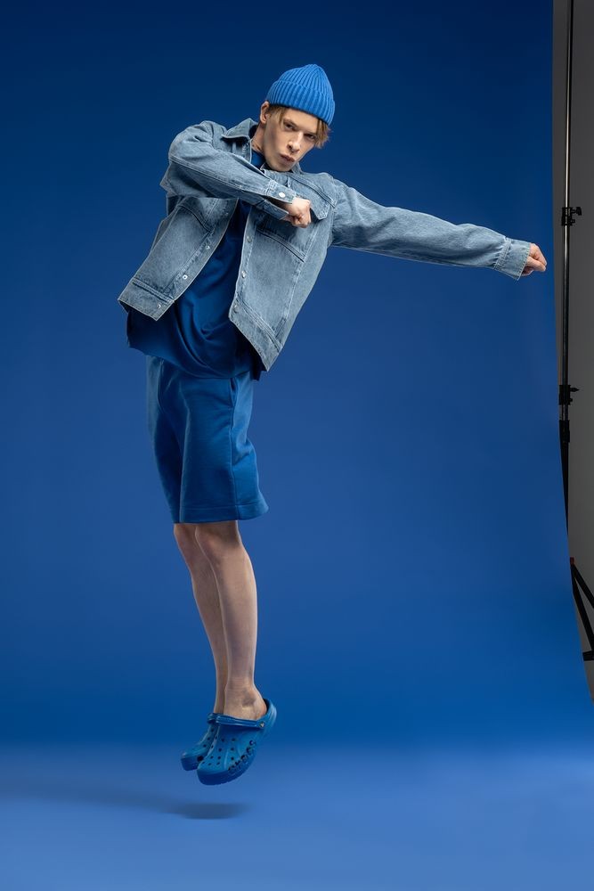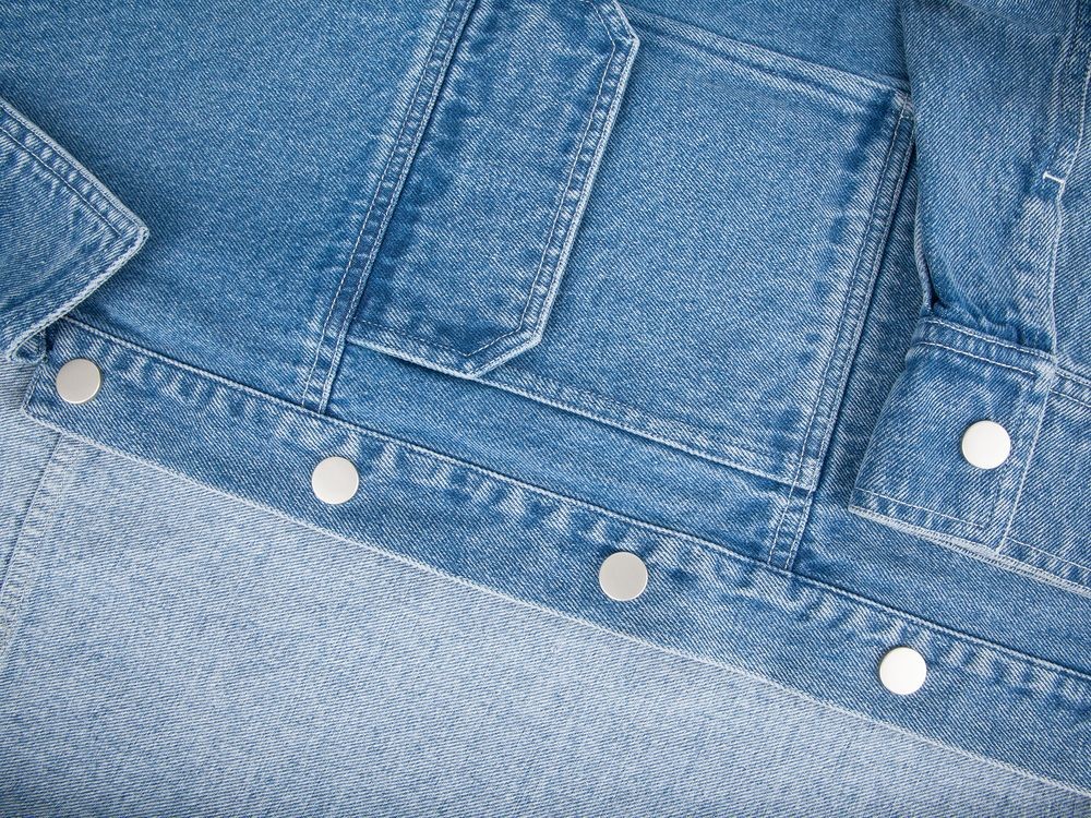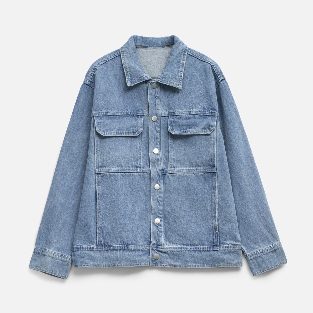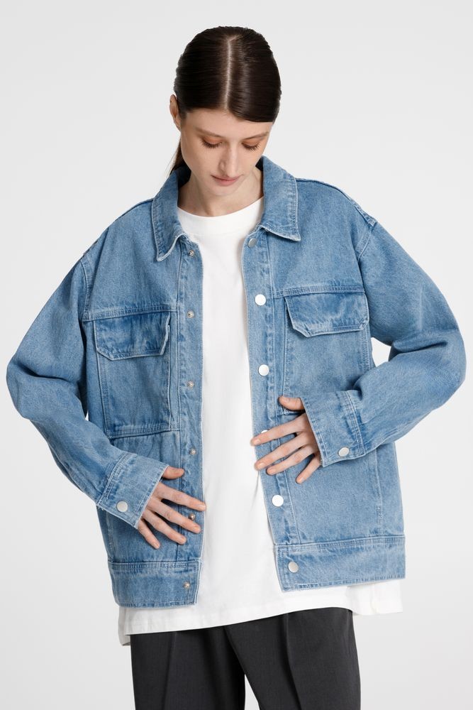 Джинсовая куртка унисекс на кнопках свободной посадки.