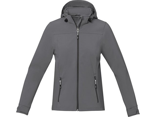 Женская куртка софтшел Langley. Стандартный покрой. Отстегивающийся капюшон на шнурках со стопперами. Обратная молния по центру и на карманах для рук. Регулируемые манжеты на липучках. Отражающий лого сзади. Водонепроницаемый 5000 мм. Дышащий 3000 мм. Ткань эластична в четырех направлениях. Ветронепроницаемая. Ремешки на собачку (второй комплект в цвете антрацит). Ткань из 90% полиэстера и 10% эластана, склеенного со 100% полиэстеровым микрофлисом. 300 г/м².