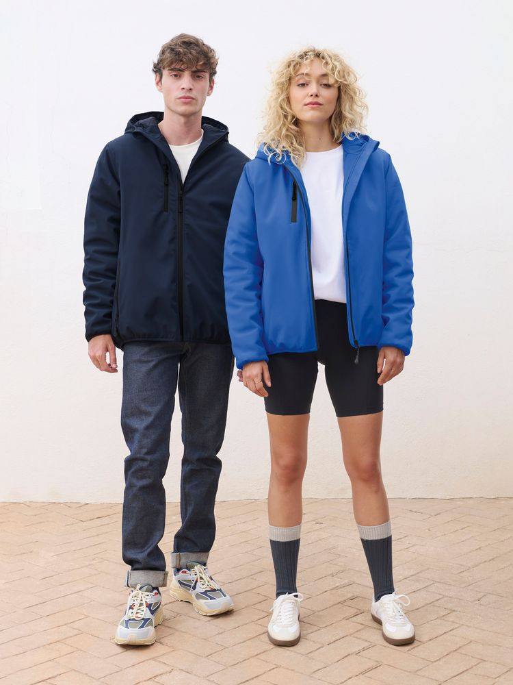 Мужская куртка софтшелл на молнии и с капюшоном.