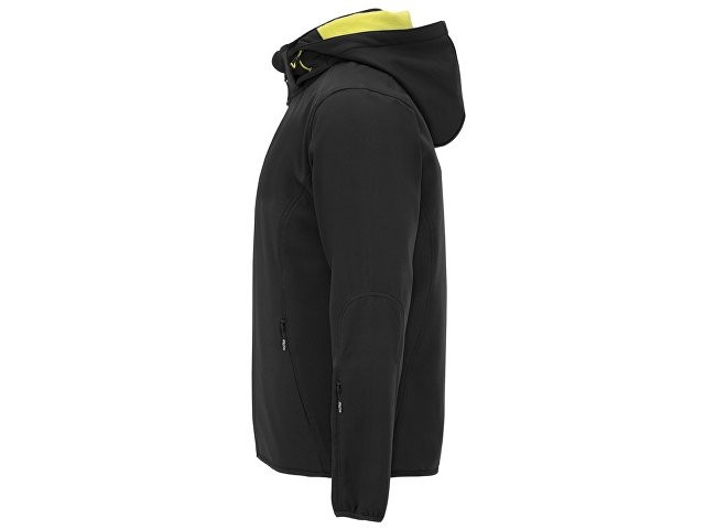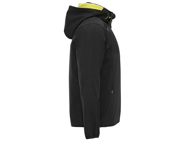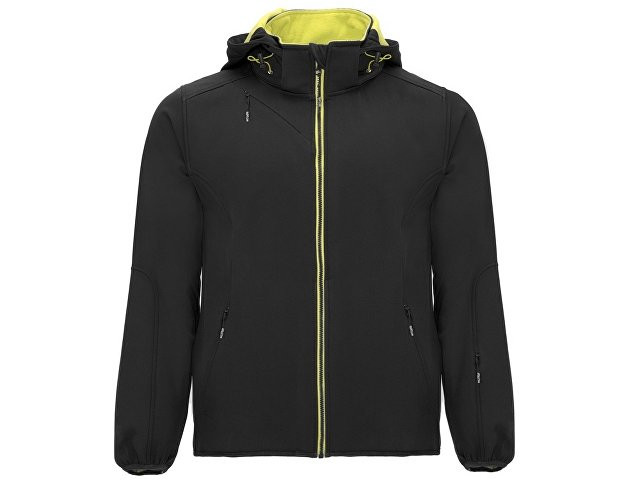 Куртка софтшелл спортивного кроя из технологичного материала * контрастная центральная молния с ветрозащитной внутренней планкой * подкладка из контрастного ультра-теплого микрофлиса * прорезной кармана на груди по диагонали справа застёгивается на потайную молнию * два боковых кармана застегиваются на потайную молнию * дополнительный карман на левом рукаве * отделка резинкой в тон по низу рукавов и изделия * капюшон складывается в воротник * технологичное полотно: водонепроницаемое, с ветрозащитой.