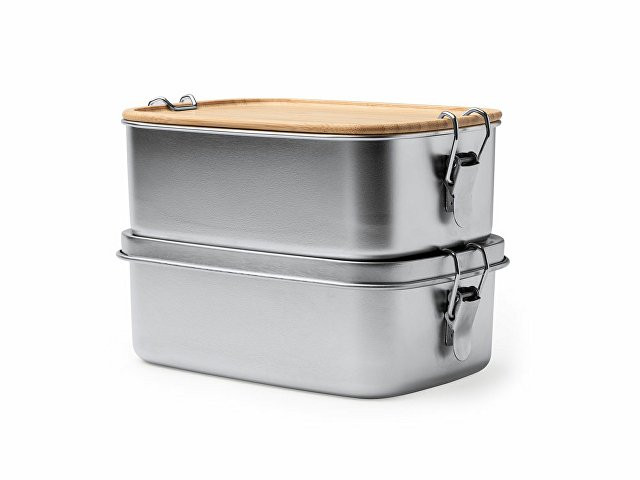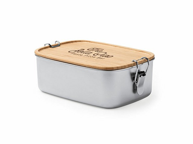 Расчет нанесенияЛанч-бокс из нержавеющей стали 304 с бамбуковой крышкой с системой закрытия с помощью боковых пряжек. Большая емкость 1 л для хранения продуктов.