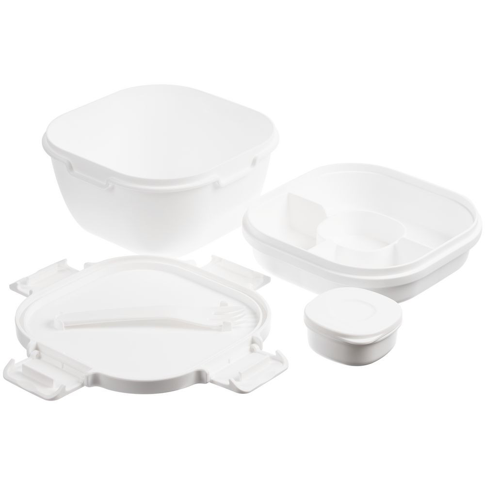 - Контейнер с 2 уровнями, вилкой и емкостью для соуса