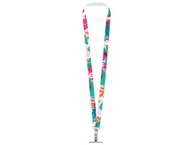 Ланъярд 2 см под сублимацию с 2-мя трендовыми карабинами и металлическим держателем для телефона, серебристый