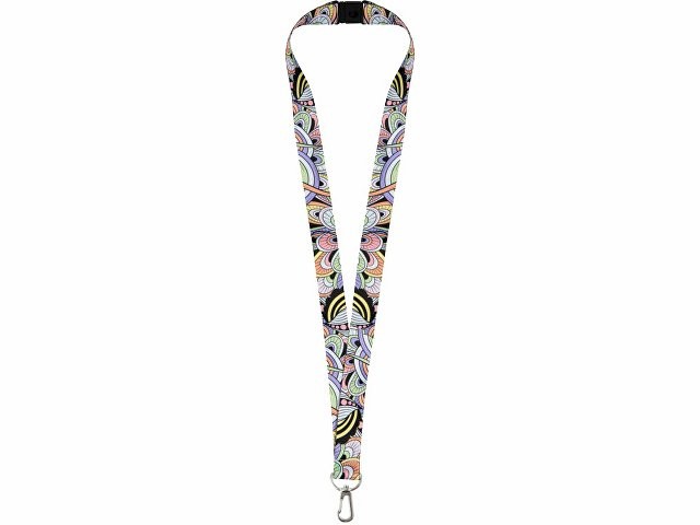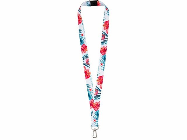 Ланъярд 2 см под сублимацию с карабином и замком обрыва, серебристый