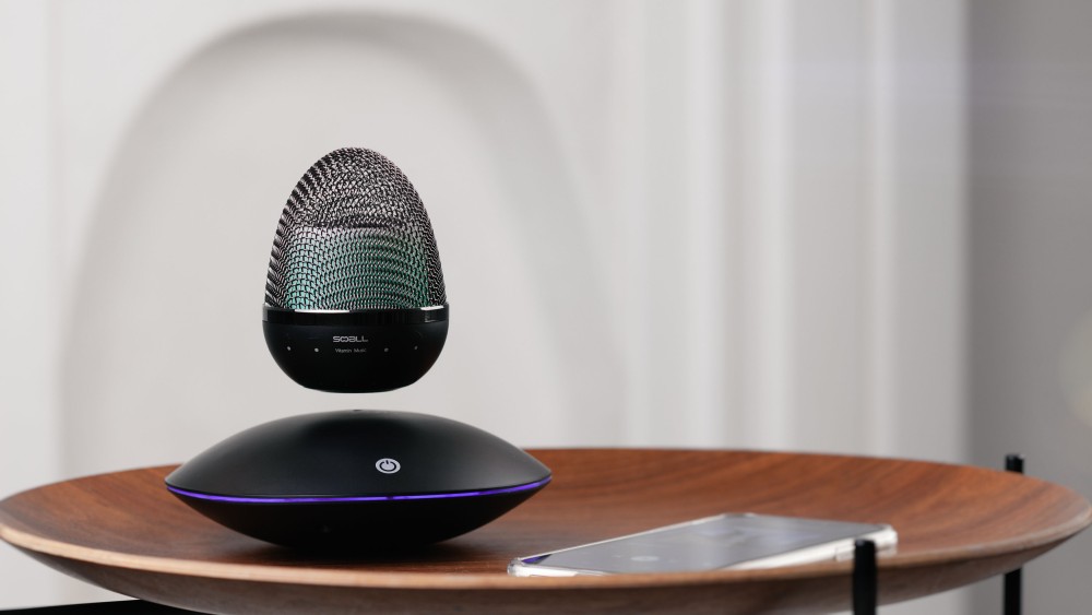 - bluetooth колонка 3Вт в форме яйца с металлической черной сеткой-корпусом и внутренней разноцветной градиентной подсветкой (можно выбрать и какой-то конкретный цвет). Левитируя, колонка подзаряжается от магнитного поля (+ можно подзаряжать и от кабеля USB/microUSB, входящего в комплект). Также колонка оснащена встроенным микрофоном и является полноценным устройством hands-free.