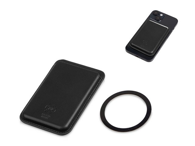 Картхолдер вмещает в себя 1-2 карты. На лицевой стороне изображен знак переработанного полиуретана, из которого сделан картхолдер, а с внутренней стороны имеется отверстие для быстрого доступа к картам. К смартфонам iPhone 12, 13, 14,15 картхолдер крепится за счёт встроенных магнитов у iPhone, а к другим смартфонам клеится металлическое кольцо (входит в комплект), а чехол магнитится к кольцу. При этом кольцо не блокирует возможность беспроводной зарядки и практически незаметно.