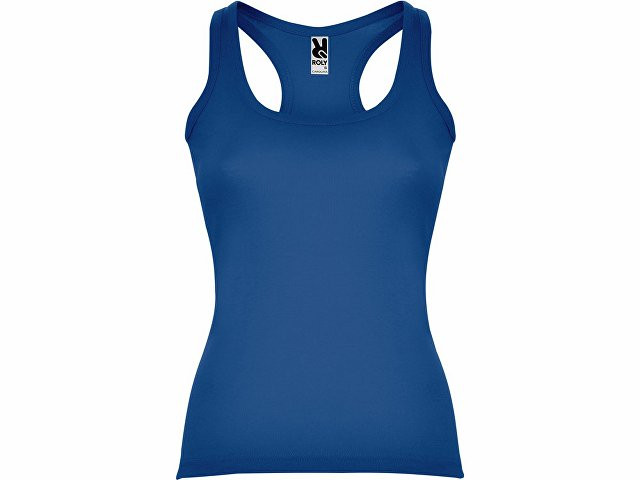 Майка приталенного силуэта с глубоким круглым вырезом горловины. Спортивная спинка, боковые швы.