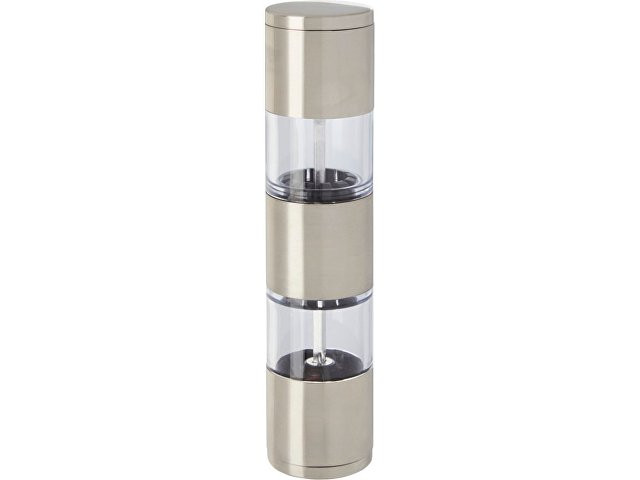Двусторонняя мельница с одной стороной для соли, а второй для перца. Перец и соль в комплект не входят. Нержавеющая сталь, пластик PS.