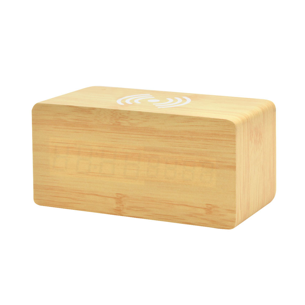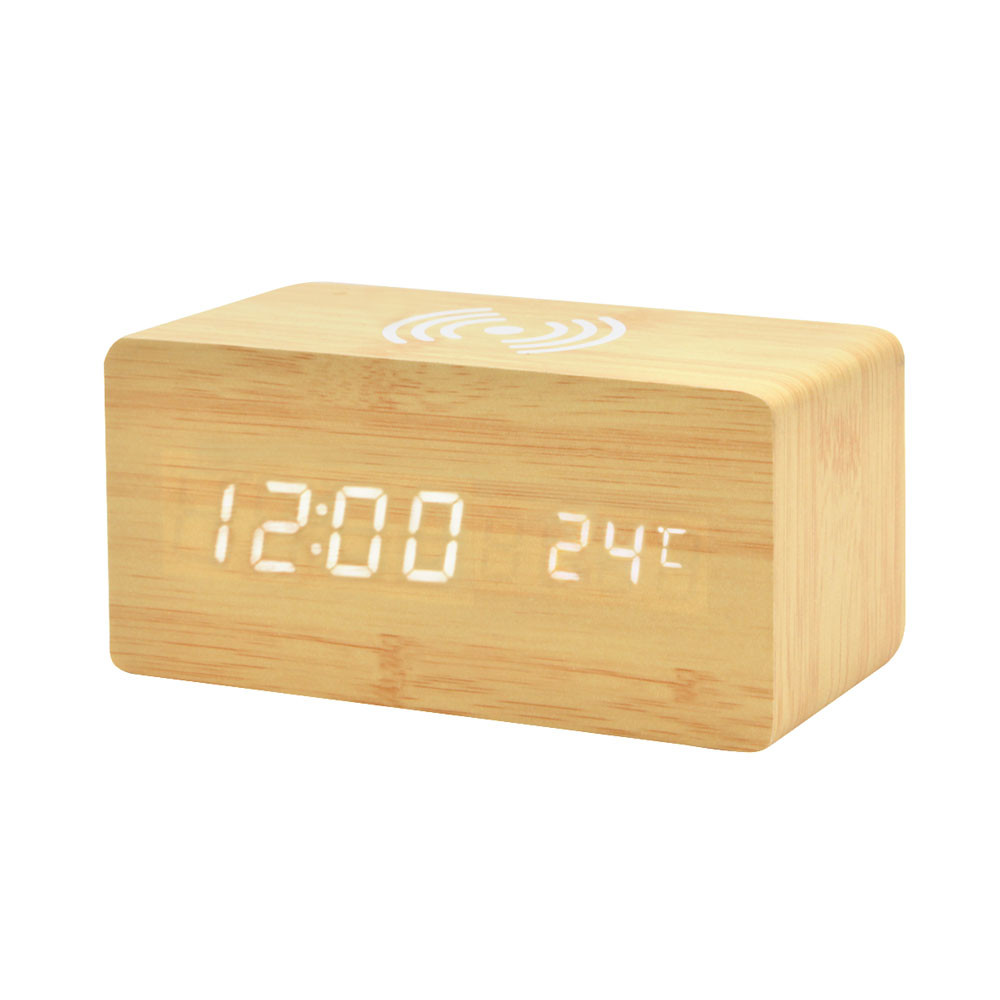 Многофункциональные деревянные часы с белой подсветкой и функцией беспроводной зарядки мощностью 5W. Функции: часы, дата, температура, 3 режима будильника, функция управления звуком (когда данная функция активирована, дисплей гаснет через 15 секунд; вы можете активировать дисплей, хлопнув в ладоши, или слегка постучав по часам). В промежуток времени 18.00-7.00 яркость подстветски снижается на 50%. Источник питания: от сети, либо с использованием 3х батареек ААА (не входят в комплект). Поставляются вместе с русскоязычной инструкцией и USB кабелем для подключения к сети Размер товара: 15 * 7 * 7 см. Для работы беспроводной зарядки необходимо подключать устройство к сети через адаптер.
