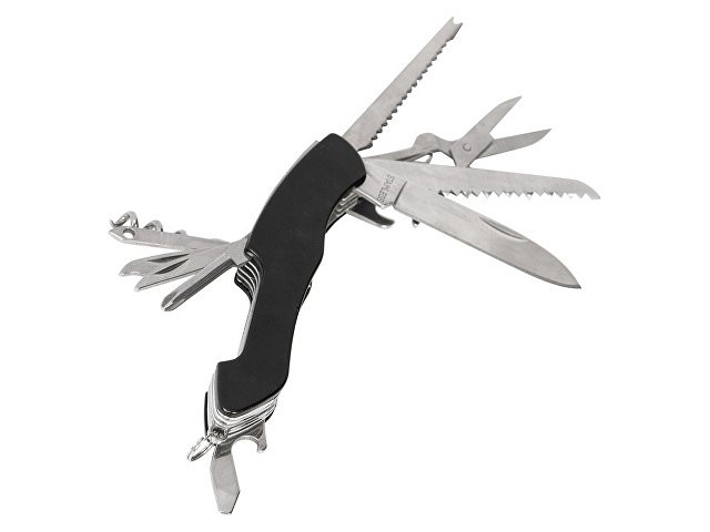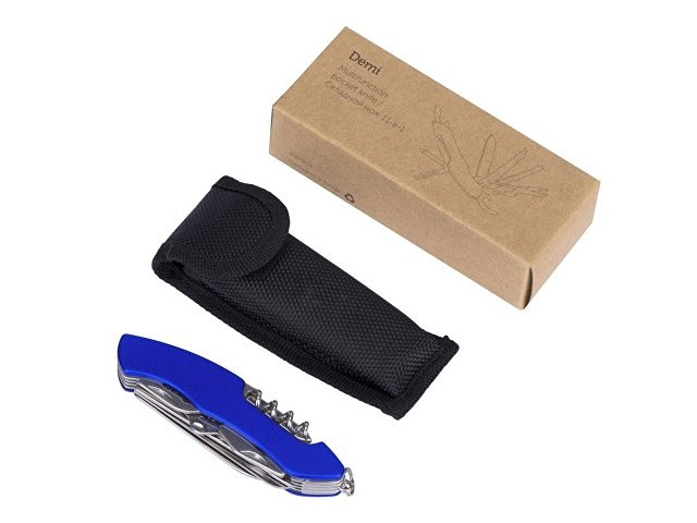 Cскладной нож-мультитул 11-в-1 «Demi» выполнен из нержавеющей стали. Поставляется в нейлоновом чехле. 1. Нож 2. Пила 3. Пила-серрейтор 4. Ножницы 5. Консервный нож 6. Плоская отвертка и открывалка для банок 7. Крестовая отвертка 8. Нож для писем 9. Пилка для ногтей 10. Шило 11. Штопор
