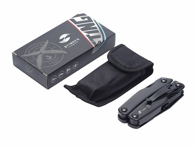 Мультитул Stinger, 100x40 мм, 11 функций, сталь, чёрный, в комплекте нейлоновый чехол