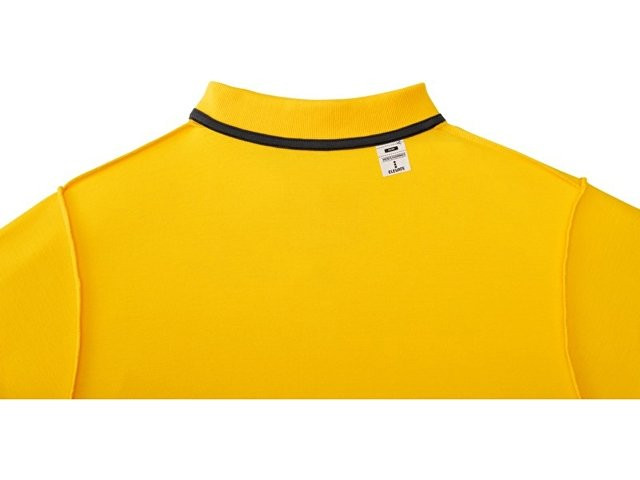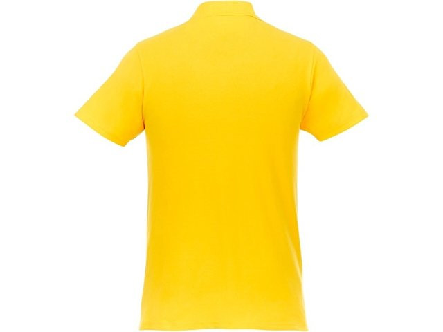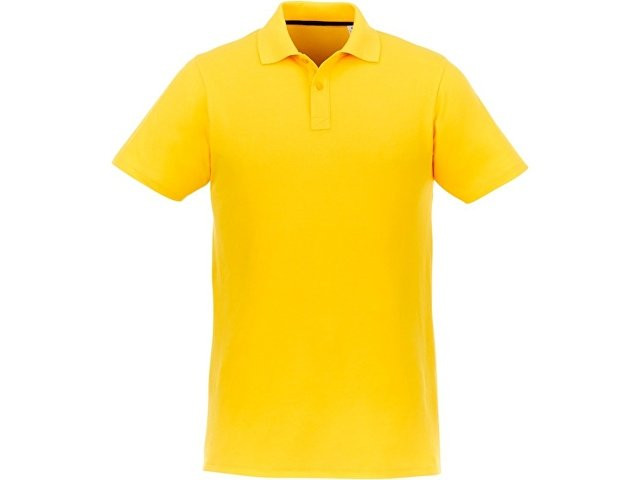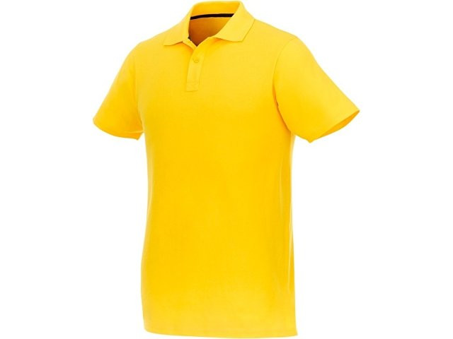 Мужское поло Helios с коротким рукавом. Отрезной-отрывной ярлык для комфорта. Воротник гладкой вязкой в рубчик. Планка с двумя пуговицами. Двойная строчка на воротнике и внизу изделия. Пуговицы в цвет изделия. Полоска на горловине в контрастном цвете. Трикотаж Piqué, 100 % хлопок. 180 г/м².