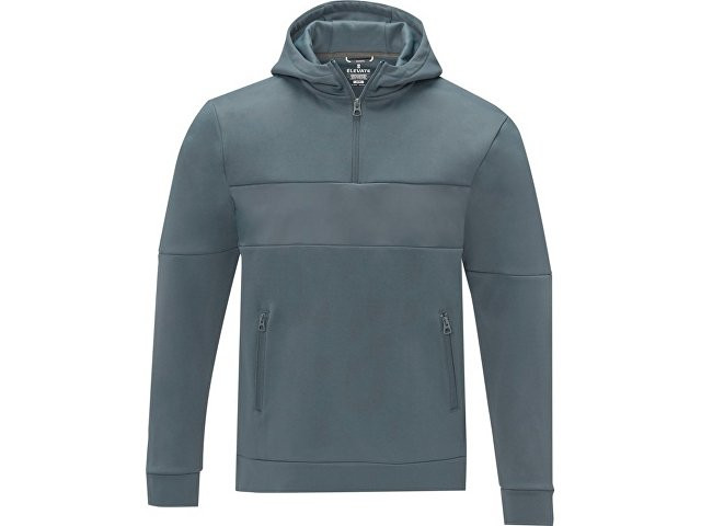 Молния на четверть длины. Модель анорак. Передние карманы с застежкой-молнией. Петля для подвешивания с фирменной символикой. Бегунки застежки-молнии с простой фиксацией. Главный лейбл нанесен методом термоприклеивания, удобным для размещения рисунков на ткани.