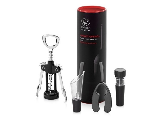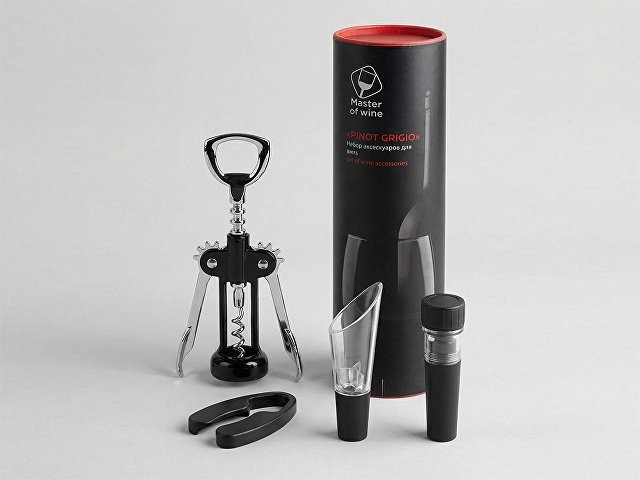 В винном наборе "Pinot Grigio" собрано все, что необходимо для откупоривания, подачи и длительного хранения вина. Аксессуары поставляются в эффектном красном тубусе и брендированном шубере. В состав комплекта входят: · механический штопор, который позволяет быстро откупорить бутылку и извлечь пробку без каких-либо повреждений; · вакуумная пробка, продлевающая срок хранения вина; · аэратор для переливания вина из бутылки в бокал и насыщения кислородом; · нож для срезания фольги. Набор аксессуаров станет функциональным и стильным подарком, который понравится ценителям благородных напитков.