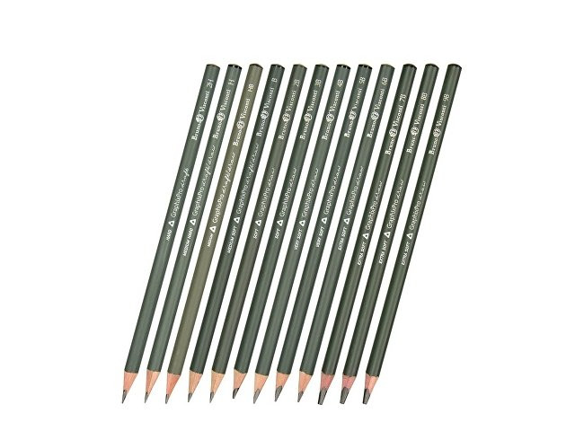 Двенадцать чернографитных карандаша «Sketch&Art» от BrunoVisconti - универсальный набор карандашей различной степени твердости (2H-9B) для выполнения различных графических работ. Корпус карандашей изготовлен из термообработанной липы, способной сохранять свои технические свойства на протяжении очень долгого времени, надежно удерживая грифель. Грифель дополнительно проклеен – не крошится, не ломается, устойчив к деформации. Карандаши покрыты защитным лаком на водной основе в несколько слоев, имеют окрашенный диппинг. Точить их можно обычной точилкой перочинным ножом и профессиональным инструментом. Набор упакован в металлическую коробку, стильную и удобную для хранения и транспортировки.