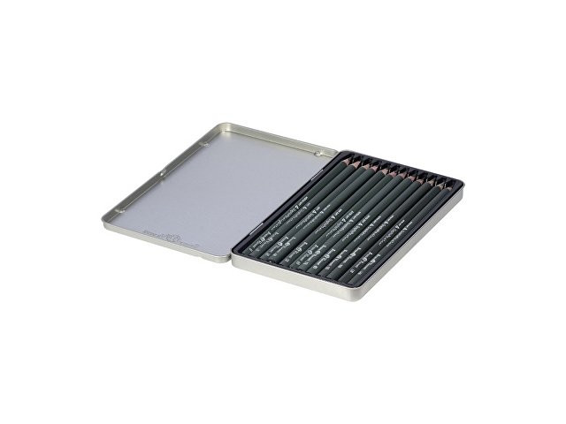 Набор ультрамягких чернографитовых карандашей со степенью твердости В-14В. Карандаши предназначены для нанесения густых теней и великолепно растушевываются. Их корпус произведен из термообработанной липы, вязкость и плотность которой позволяет надёжно удерживать грифель и сохранять качество заточки на высоком уровне. Сам грифель проклеен и отцентрован, что гарантирует ударопрочность при падении карандаша. Карандаши имеют трехгранную форму - дополнительный комфорт в работе. Оригинальный и узнаваемый дизайн, комплектация в металлической коробке - удобно хранить, транспортировать, и это идеальный вариант для подарка.