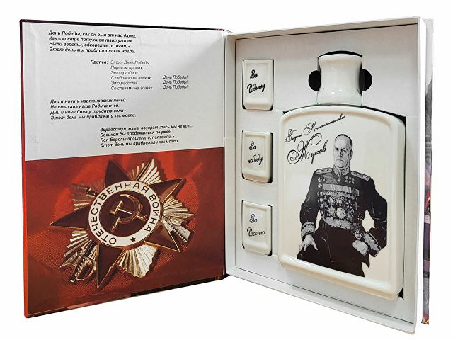 День Победы - один из самых важных и памятных государственных праздников в нашей стране. В этот знаковый для России день принято дарить памятные сувениры. Подарочный набор "День Победы" - это великолепный подарок, который запомнится надолго. Сувениры изготовлены из высококачественной керамики и упакованы в подарочную коробку с изображением главных символов праздника. В комплекте идет штоф и три стопки с патриотическими тостами "За Россию", "За Родину", "За победу". Этот подарочный набор станет прекрасным дополнением к праздничному столу. Внимание! Данное изделие относится к категории повышенной хрупкости. Для обеспечения его целостности и безопасной транспортировки настоятельно рекомендуется использование обрешетки. Обрешеточная упаковка является обязательной при доставке, и компания Oasis не несёт ответственности за повреждения, возникшие в результате ненадлежащей упаковки или транспортировки без обрешетки.