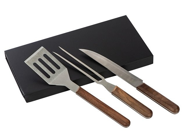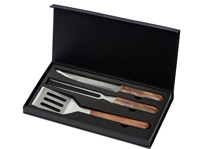 Набор для барбекю от Tour de Grass состоит из лопатки, вилки и ножа с ореховыми ручками. Все три приспособления для готовки — изящные, функциональные, прекрасно подойдут для подарка, а футляр на магните, идущий в комплекте, решит вопрос упаковки. - длинные деревянные ручки, которые удобно держать в руке — так вы точно не обожжетесь во время готовки - нержавеющая сталь - подарочная упаковка на магните