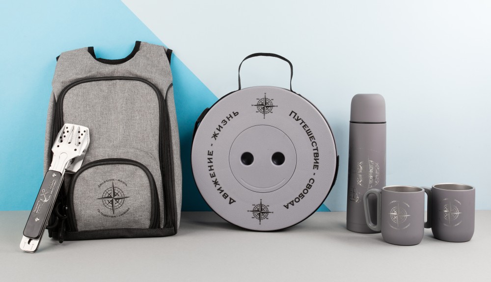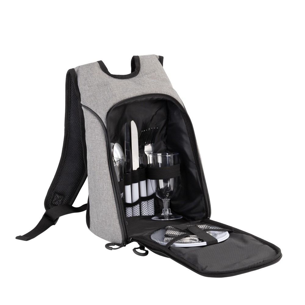 В набор входит: *Сумка 23 х 33 х 12 см *Вилки, ложки и ножи из нержавеющей стали по 2 шт. *Тарелки d 15 х 0,9 см - 2 шт.  *Бокалы из поликарбоната h 13,2 х d 6,4 см, объем 200 мл - 2 шт. *Салфетки из хлопка 30 х 30 см - 2 шт.