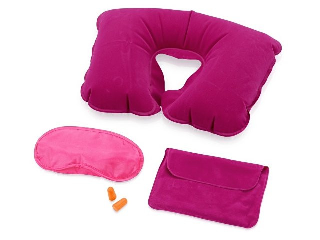 Замечательный дорожный набор включает в себя надувную подушку, маску на глаза и беруши, все это упаковано в специальный чехол. Приятная на ощупь поверхность набора обеспечит комфортный сон в любой обстановке.