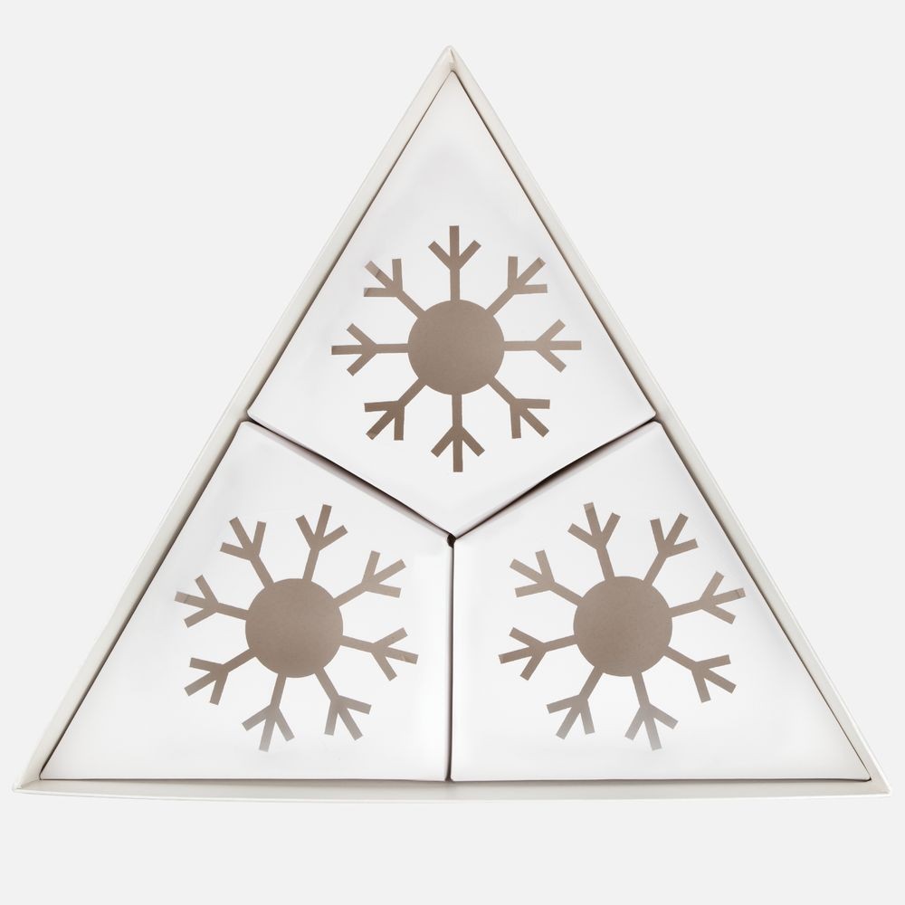 А еще Finery Trio — это маленькое произведение искусства, созданное с вниманием к деталям: шары диаметром 10 см бережно уложены в индивидуальные ложементы с изящным вырезом в форме снежинки, а стильная коробка придает подарку особую торжественность. Нестандартная треугольная форма упаковки подчеркивает оригинальность композиции и делает презент по‑настоящему запоминающимся.