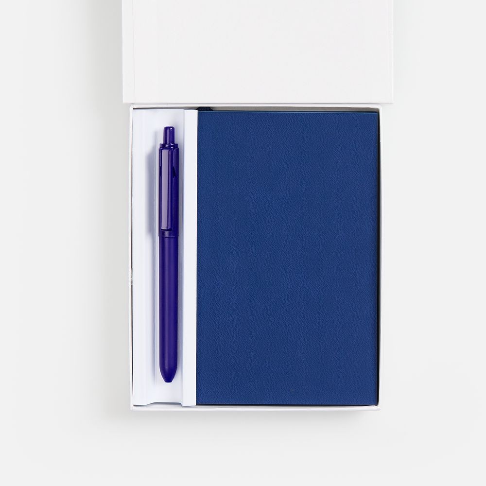 Миниатюрный набор со стильным ежедневником в гибкой обложке с покрытием софт-тач и ручкой интересной формы. Все составляющие сложены в компактную коробку с ложементом, которая придает набору аккуратность.