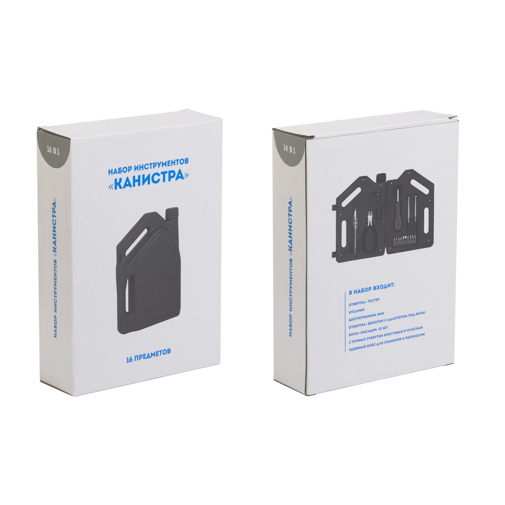 Набор «Канистра» — это 16 инструментов в пластиковом кейсе в виде канистры для бензина.