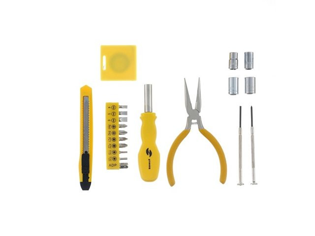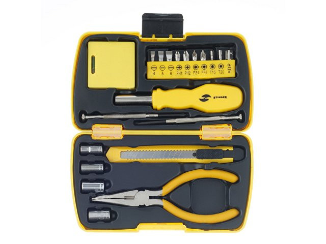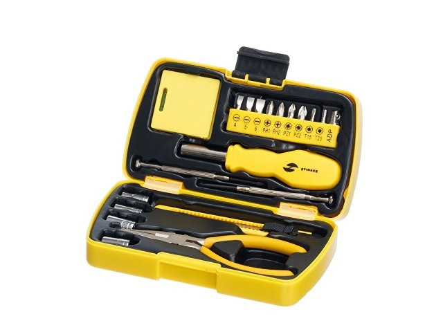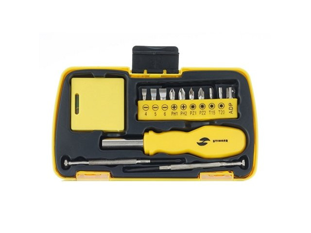 НАБОР ИНСТРУМЕНТОВ STINGER, 20 ПРЕДМЕТОВ Набор инструментов STINGER NST128020 на 20 предметов – это идеальный вариант для решения любых хозяйственных задач. Он с лёгкостью справится с любой задачей, будь то мелкий ремонт в квартире, починка бытовой техники или сборка мебели. Все инструменты изготовлены из высококачественной закаленной углеродистой стали с хромированным покрытием, ручки выполнены из специального нескользящего пластика. В КОМПЛЕКТЕ: 1. Рукоятка для бит - 1 шт. 2. Бита - 9 шт. 3. Адаптер для шестигранных головок - 1 шт. 4. Головка шестигранная (7/8/9/10 мм) - 4 шт. 5. Нож канцелярский – 1 шт. 5. Отвёртка прецизионная шлицевая – 1 шт. 7. Отвёртка прецизионная крестовая – 1 шт. 8. Рулетка измерительная (1 м) с уровнем – 1 шт. 9. Плоскогубцы – 1 шт. ХАРАКТЕРИСТИКИ: Материал: углеродистая сталь, пластик, полипропилен Размер: 160 х 90 х 40 мм