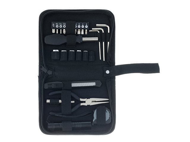 НАБОР ИНСТРУМЕНТОВ STINGER, 25 ПРЕДМЕТОВ Набор инструментов STINGER W0109 на 25 предметов придётся по вкусу всем тем, кто привык всё делать своими руками. С таким комплектом можно без труда произвести практически любой мелкий бытовой ремонт. Все предметы надёжно закреплены в прочном нейлоновом чехле. Этот компактный набор можно хранить в тумбочке, на полке, в шкафу или бардачке машины. Стальные рабочие части инструментов отличаются повышенной прочностью, рукоятки выполнены из износостойкого карбона. Для удобства чехол дополнен матерчатой ручкой для переноски. В КОМПЛЕКТЕ: 1. Рукоятка для бит - 1 шт. 2. Бита - 9 шт. 3. Адаптер для шестигранных головок - 1 шт. 4. Удлинитель для шестигранных головок – 1 шт. 5. Головка шестигранная (6/7/8/9/10/12 мм) – 6 шт. 6. Нож канцелярский – 1 шт. 7. Ключ шестигранный – 3 шт. 8. Плоскогубцы – 1 шт. 9. Рулетка измерительная (1 м) – 1 шт. 10. Фонарик – 1 шт. ХАРАКТЕРИСТИКИ: Материал: углеродистая сталь, углепластик (карбон) Размер: 172 х 125 х 42 мм