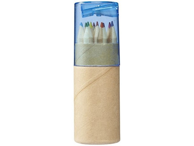 Набор из 12 маленьких карандашей в картонном стакане с точилкой.