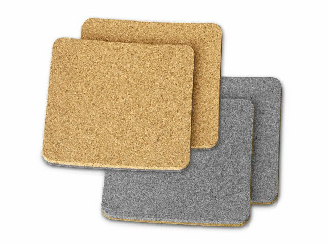 Четыре квадратных костера, выполненных из фетра и пробки. Благодаря выбору материалов «посадка» стаканов — мягкая и бесшумная: и пробка, и фетр заглушают звук, безопасны и для посуды, и для поверхности стола, защищая от механических повреждений и загрязнения. - интересное сочетание материалов - для защиты поверхности стола и предотвращения сколов дна посуды - 4 штуки в комплекте - двустороннее использование Не рекомендуется использовать в посудомойке.