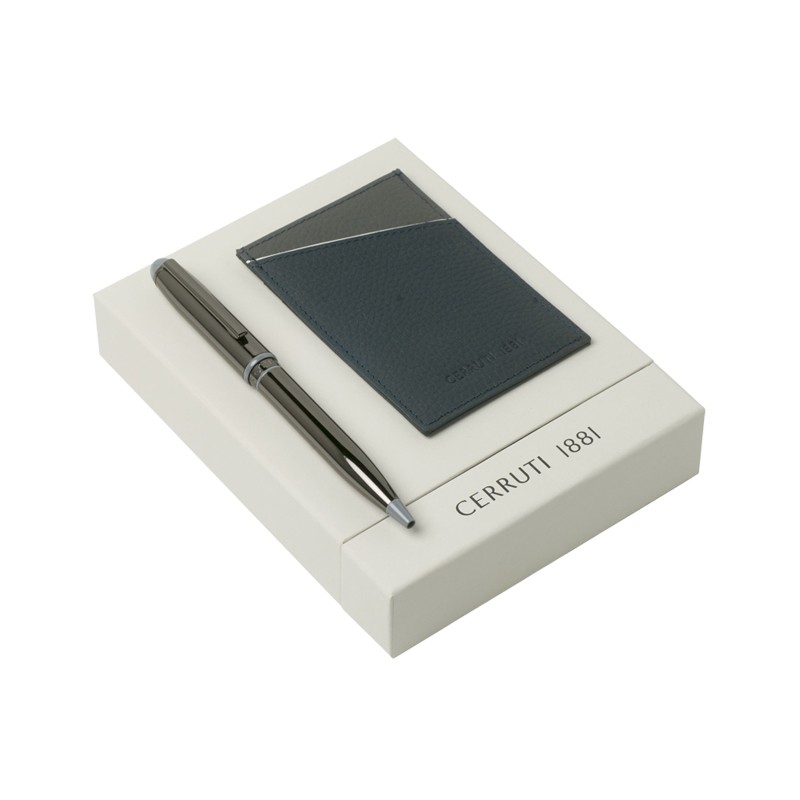 Набор (кредитница, шариковая ручка), черный с коричневым