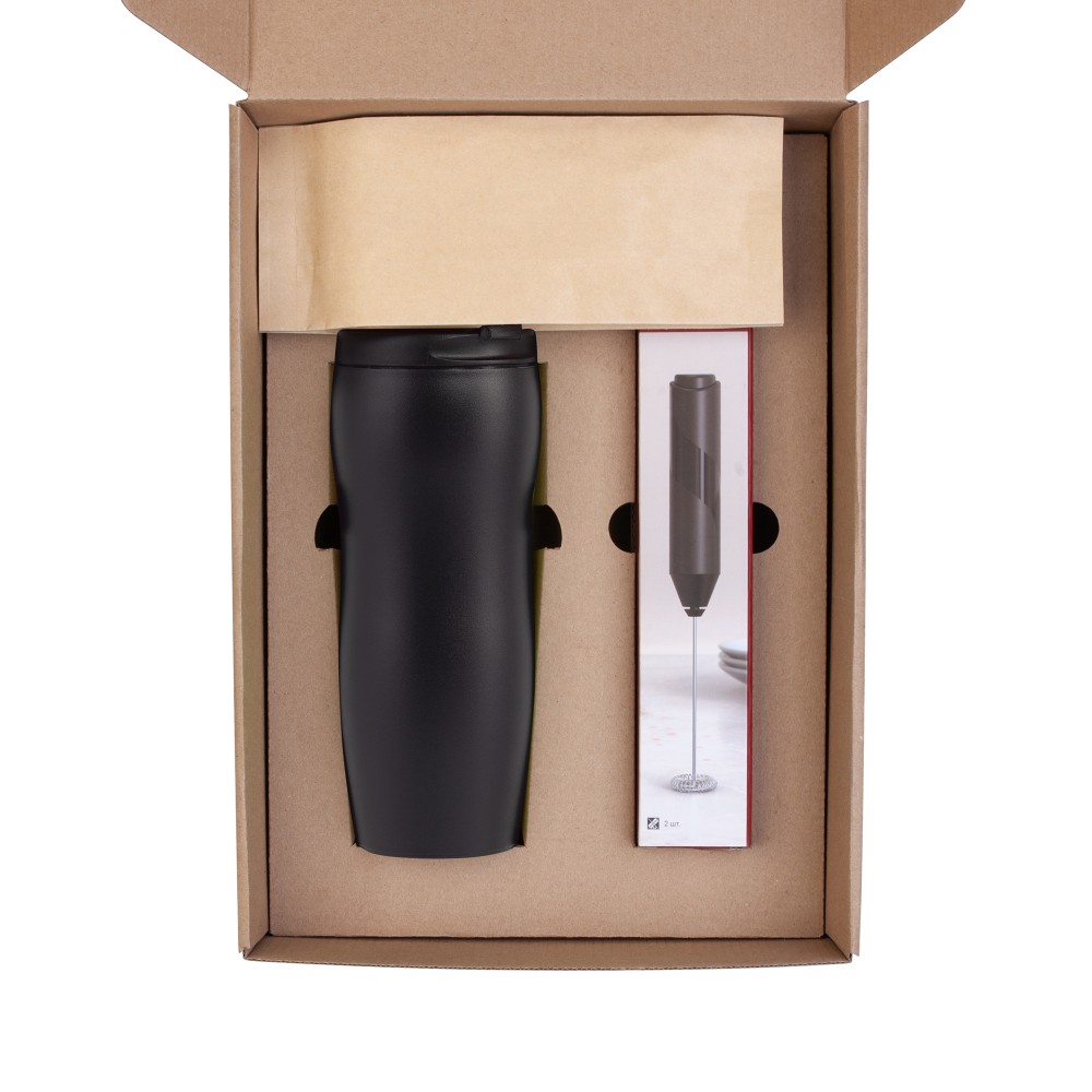 Набор, который станет приятным подарком для всех любителей кофе: зерновой кофе, термостакан и капучинатор для молока, чтобы ваш напиток получился с пенкой!