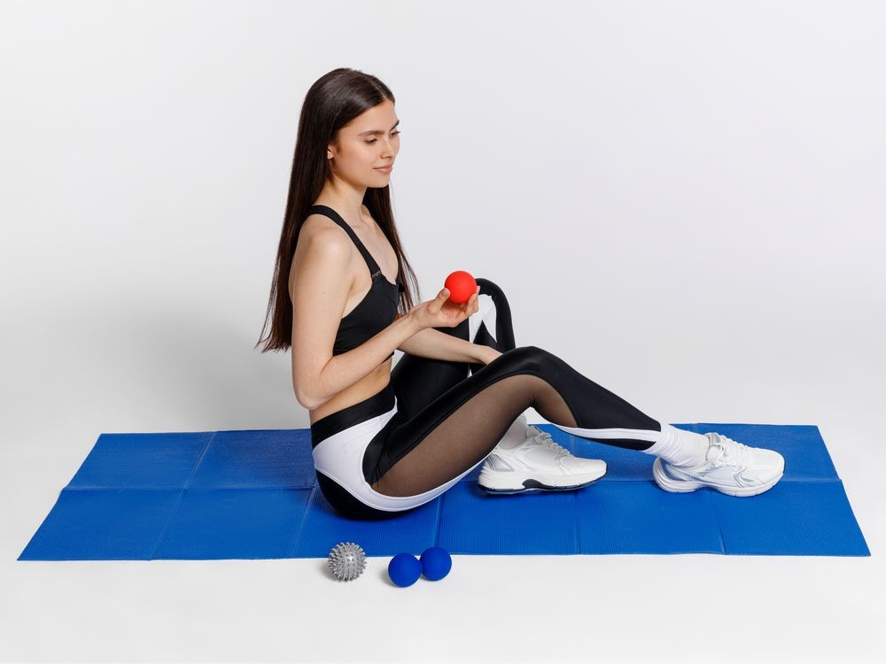 Разместите мяч на точке, в которой чувствуется дискомфорт, надавите и прокатывайте его из стороны в сторону в течение нескольких минут до ощущения расслабления.