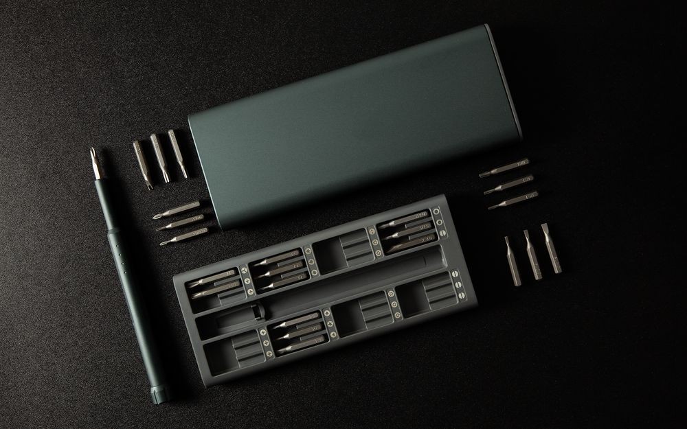 В комплекте магнитный держатель и 24 биты: