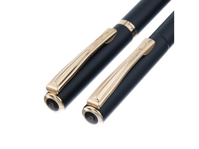 Набор: ручка шариковая + роллер Pierre Cardin PEN and PEN • Корпус - латунь. Цвет - черный; • Отделка - стальное покрытие; • Детали дизайна - позолота; • Упаковка: - Тип Е - картонная коробочка черного цвета с картонным ложементом красного цвета. Размер 175 х 55 х 35 см, вес 35 гр. - Тип Е-1 - картонная коробочка серо-черного цвета с картонным ложементом белого цвета. Размер 185 х 66 х 30 мм, вес 101 гр Комплектация: • Металлический шариковый и/или роликовый стержень с логотипом Pierre Cardin на корпусе, с чернилами синего цвета; • Инструкция по использованию ручки. Серия Pierre Cardin PEN & PEN представляет из себя коллекцию наборов пишущих инструментов. В большинстве случаев наборы включают шариковую ручку и ручку-роллер и представляют неповторимые дизайны, аналогов которым нет в прочих сериях Pierre Cardin. Наборы PEN & PEN отлично дополняют общую коллекцию пишущих инструментов и являются прекрасным подарком.
