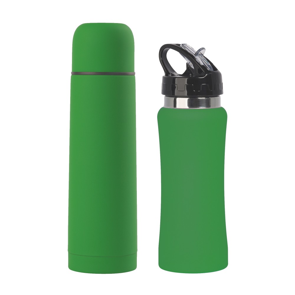 Подарочный набор "Активити" - универсальный подарок для тех, кто предпочитает энергично и активно проводить свое свободное время. Продукция в наборе имеет уникальное прорезиненное напыление с широкими возможностями персонализации по окружности встык. Набор "Активити", включающий термос "Крит" и спортивную бутылку "Индиана", незаменим в спортивном клубе, на природе, в путешествии и даже на прогулке.