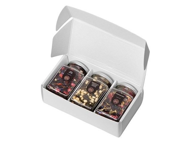 Набор подарочный «Bouquet» Для тех, кто хочет добавить в чаепитие новых красок, придумана серия «Bouquet». Каждый купаж чая в серии имеет разнообразные и неожиданные добавки фруктов, ягод или трав. Набор состоит из трёх видов чая: «Граф Орлов» - чёрный индийский чай с лепестками василька и ягодами красной смородины; «Моли Хуа» - китайский зелёный чай Тегуаньинь с бутонами жасмина; «Таёжный сбор» - чёрный индийский чай с лесными ягодами и мелиссой. - вес чая: 50, 65 и 40 гр.; - разнообразие вкусов и ощущений; - упаковка - стеклянная банка, надёжно сохраняющая все ароматы.