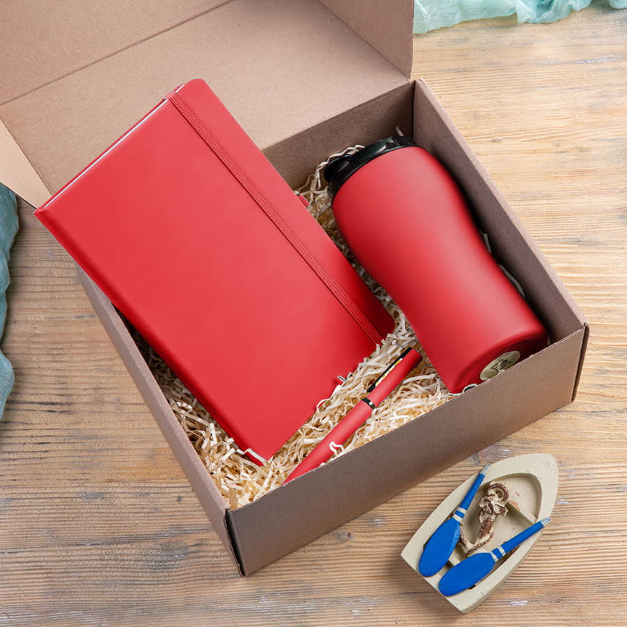 Набор подарочный SILKYWAY: термокружка, блокнот, ручка, коробка, стружка зеленый, Красный