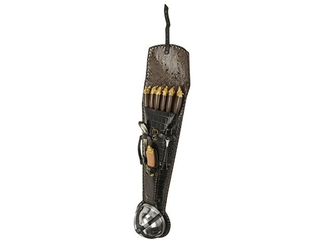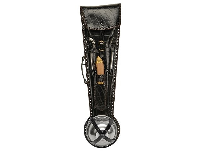 Набор для пикника в кожаном чехле ручной работы. В комплект входит: Тарелка 500 мл d16 х 7 см - 6шт Стопка d5,2 х 6 см - 6шт Нож 28,5 х 4 х 2,5 см - 1шт Ложка 19,3 х 4,5 х 3 см - 6шт Вилка 19,3 х 2,5 х 2 см - 6шт Топор 39,5 х 14,5 х 3,2 см - 1шт Ножки для мангала 50,5 х 31 х 1 см - 2шт Шампур 68 х 4 х 2,5 см - 6шт