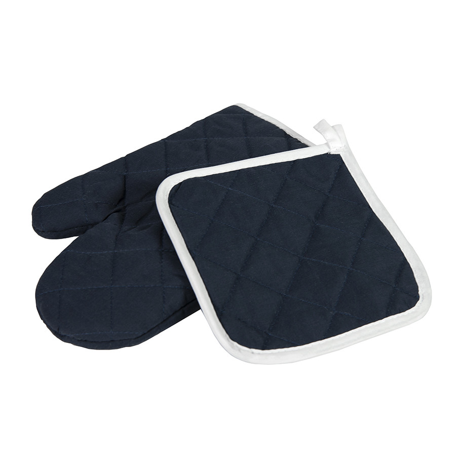 Комплект: прихватка и рукавица LESTON, желтый, полиэстер, хлопок, Темно-синий