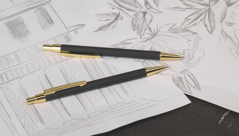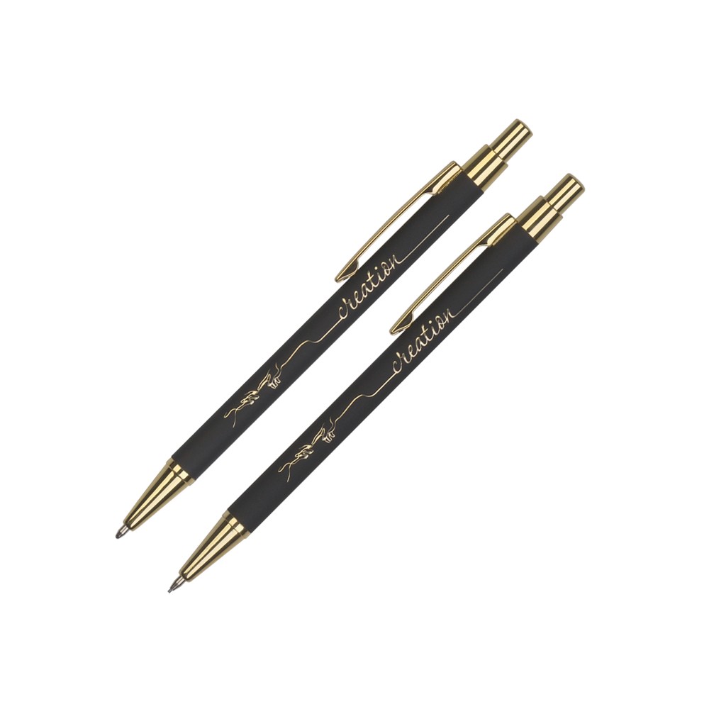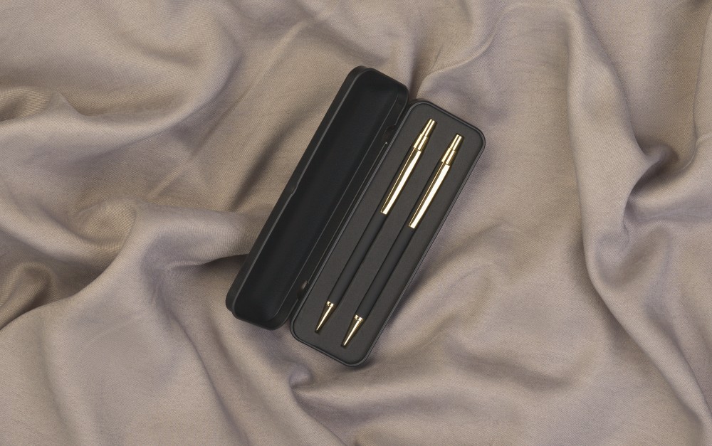 Расчет нанесенияМеталлическая ручка и карандаш с корпусом в покрытии soft touch в металлическом черном футляре.