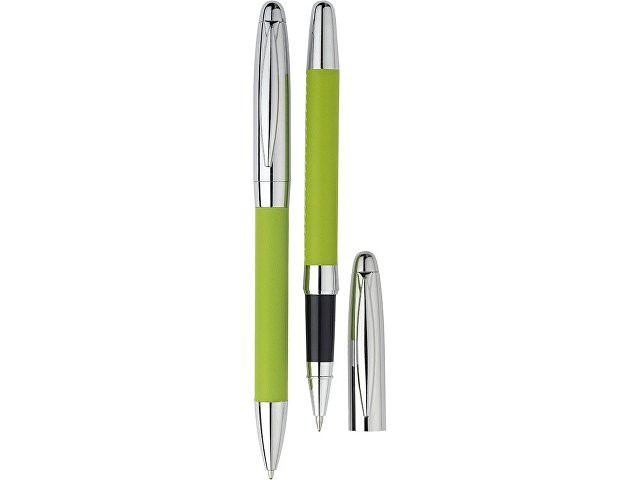 Стильный набор, состоящий из шариковой ручки, ручки-роллер и футляра с шильдом, обладает ярким дизайном и сочетанием фактур. Отличный подарок для женщин и мужчин. Ручки и футляр выполнены в единой цветовой гамме.