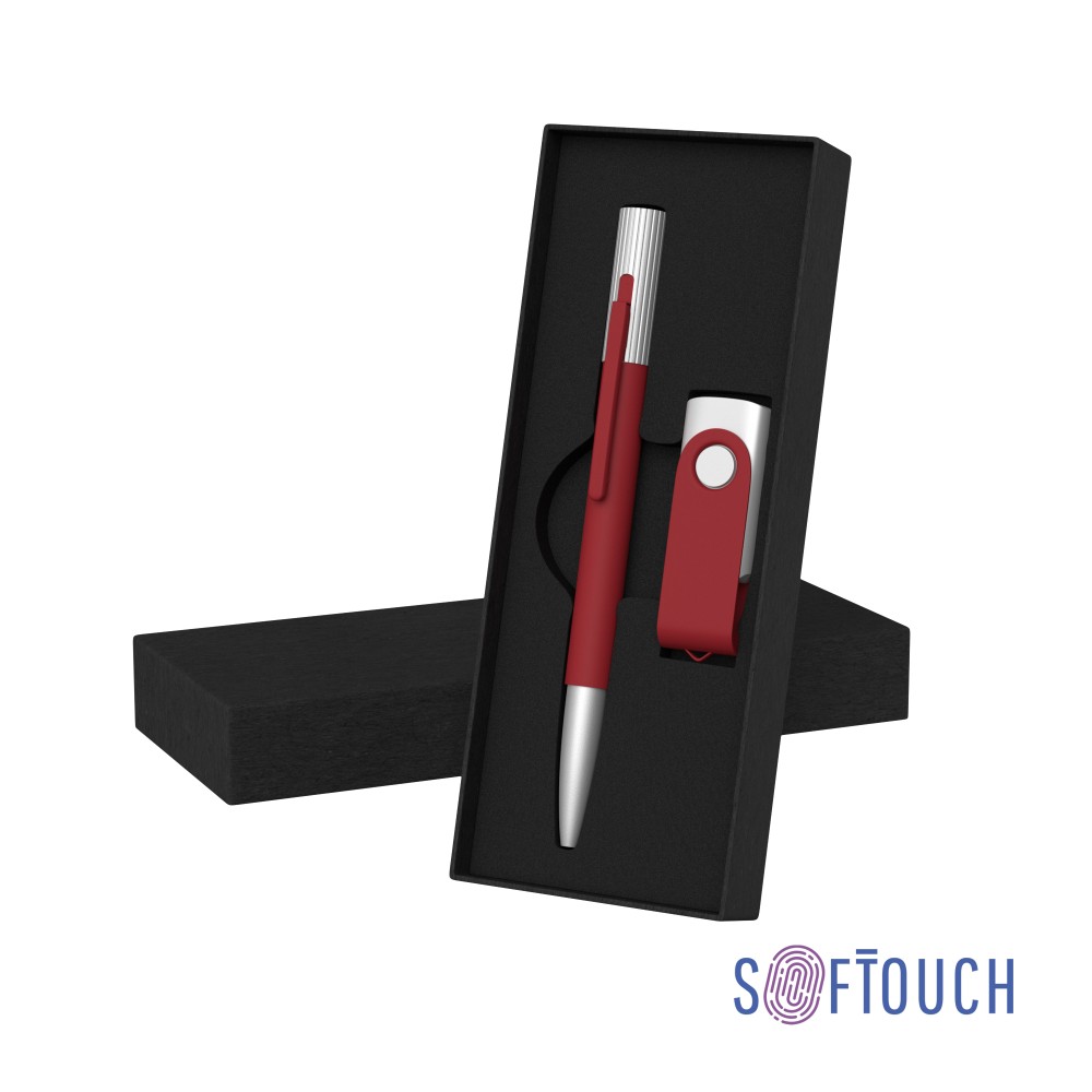 Набор ручка "Clas" + флеш-карта "Vostok" 16 Гб в футляре, оранжевый, покрытие soft touch, красный