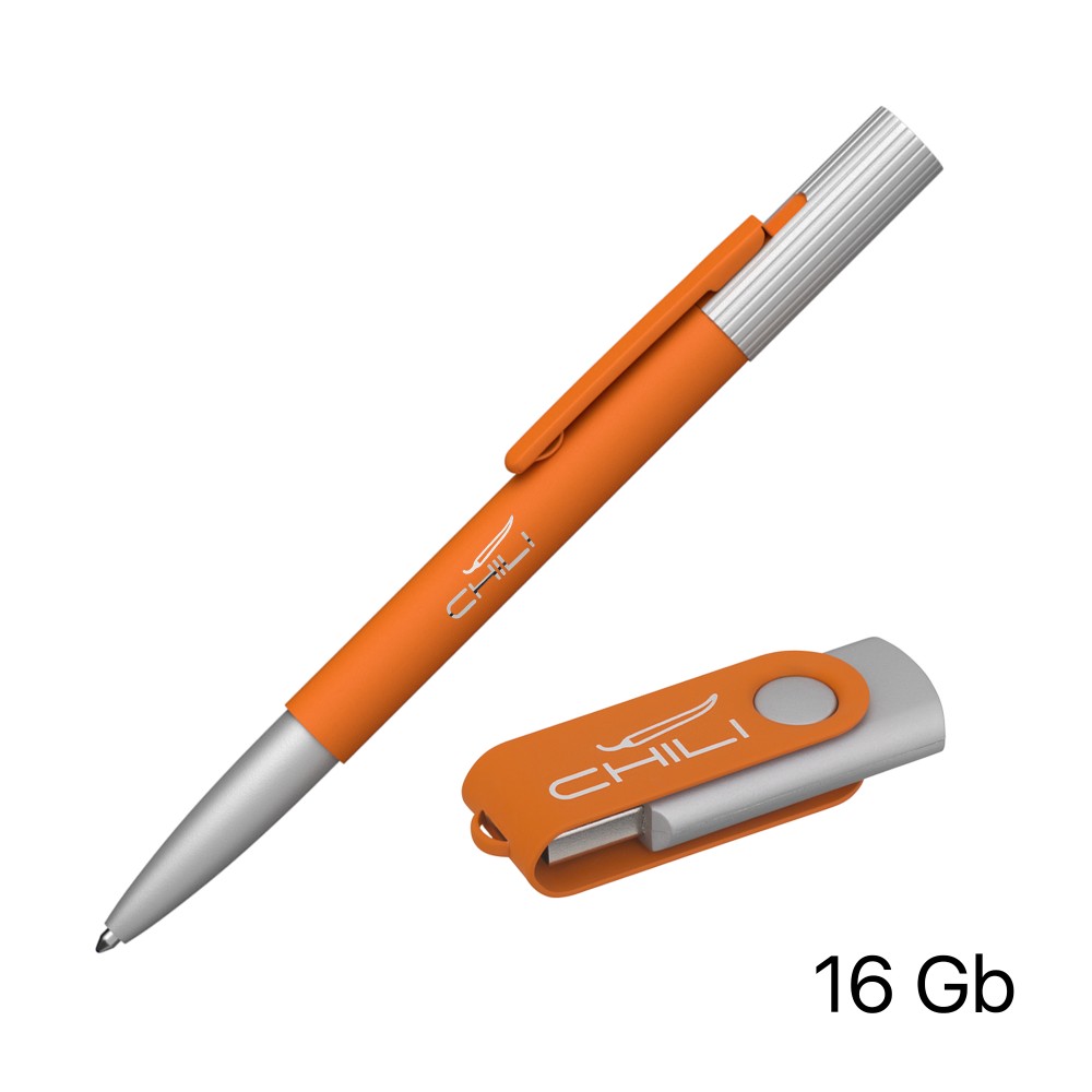 Набор ручка "Clas" + флеш-карта "Vostok" 16 Гб в футляре, оранжевый, покрытие soft touch, оранжевый